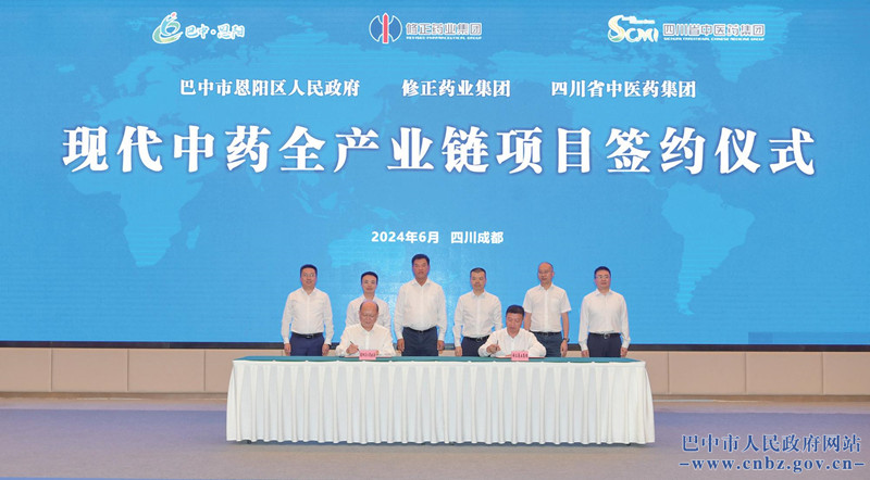 在成都分會(huì)場(chǎng),舉行了現(xiàn)代中藥全產(chǎn)業(yè)鏈項(xiàng)目簽約儀式,巴中市恩陽(yáng)區(qū)人民政府分別與修正藥業(yè)集團(tuán)、四川省中醫(yī)藥大健康產(chǎn)業(yè)投資集團(tuán)簽訂合作協(xié)議?,F(xiàn)代中藥全產(chǎn)業(yè)鏈項(xiàng)目總投資4.2億元,包括建設(shè)中藥材種植基地、中藥材加工生產(chǎn)線、中藥材展示交易中心、中藥和大健康產(chǎn)品制造等內(nèi)容。