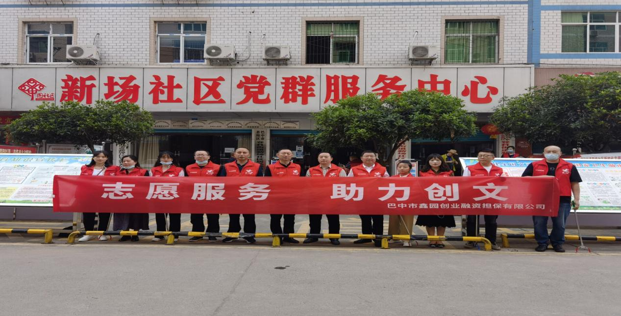 7月30日上午,巴中市鑫園創(chuàng)業(yè)融資擔保有限公司黨支部組織公司黨員志愿者和青年志愿者到恩陽區(qū)新場社區(qū)開展“志愿服務、助力創(chuàng)文”活動。